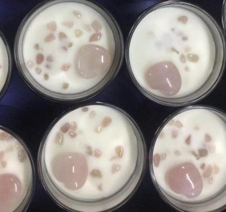 Inspired by the highly successful romantic Tv Series, Bridgerton. “I Burn for You” is a highly scented Soy Candle infused with Heart shaped Rose Quartz and Smokey Quartz crystals.